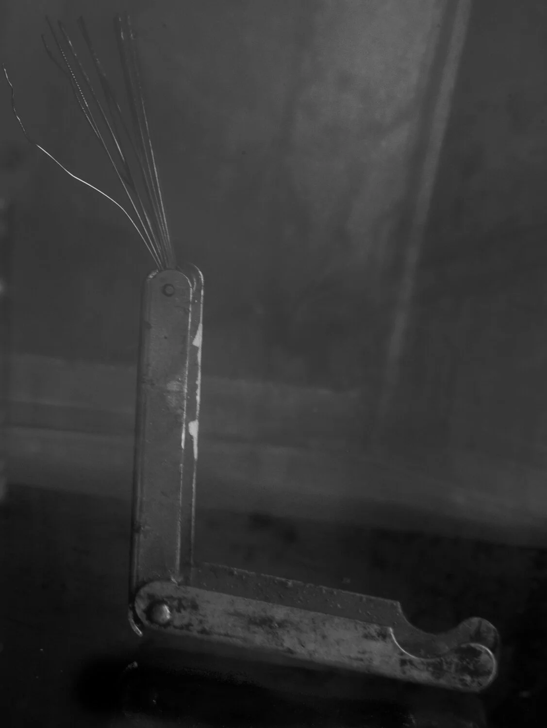This work began as an exploration of water as an essential element. The water provided a construct for composing abstractions of a variety of forms. I created abstraction with the way the water mirrored, refracted, and bent the light, or how water took shape around objects and broke the surface tension. I started with the human form and then moved to objects. The objects I chose were tools that remained from my family farm which is now gone.